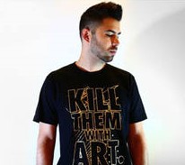 Almarinez approaches his work without a formula, creating each piece organically and impulsively; the vibrant, energetic colors of his work mirror his approach and technique. His unique design style combines splatter painting, screen-printing, squeegee art, and graphic design into an organized chaos, much like our technological, chaotic world.